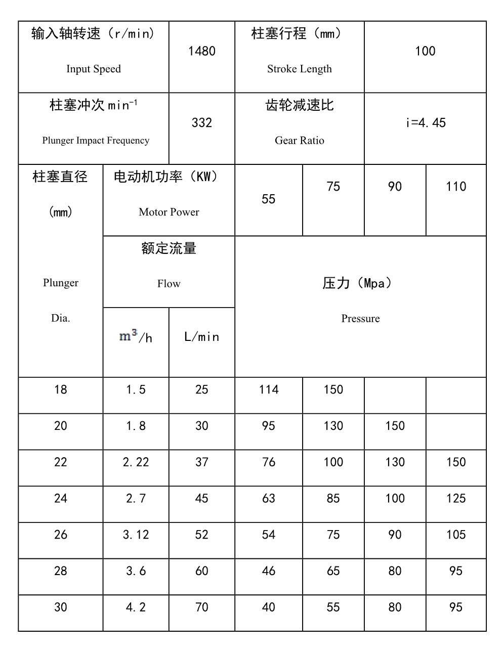 The pump is equipped with in-built chevron gear deceleration devic. It has the properties of high transmission efficiency, low noises, stable operation, small size and compact construction. During the running, high-speed shaft can automatically adjust in horizontal direction, which makes it has balanced and reliable transmission, low friction coefficient, high lubrication, low temperature rising at power end, long-time continuous operation, etc. Fluid end of pump is designed in single-lined pump group and construction of pump end. Compact construction can make it easy to operate and maintain. The max.crankshaft thrust force is 57KN.